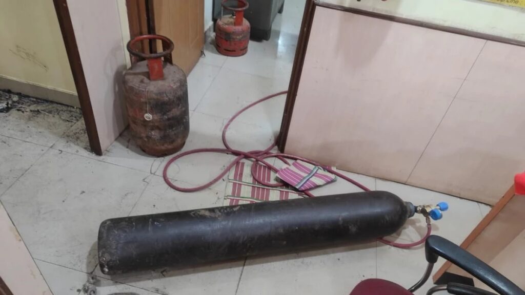 राजधानी रविवार देर रात एक बड़ी वारदात टल गई। तेलीबांधा थाना क्षेत्र स्थित यूको बैंक (UCO Bank) में अज्ञात चोर गैस कटर और सिलेंडर लेकर घुस गए और तिजोरी तोड़ने का प्रयास किया। हालांकि उनकी योजना पूरी नहीं हो सकी। समय रहते राहगीरों ने बैंक से धुआं निकलते देखा और पुलिस को सूचना दे दी। मौके पर पहुंची पुलिस ने बैंक अधिकारियों को बुलवाकर जब ताला खुलवाया गया। तिजोरी वाले कार्नर में गैस सिलेंडर, गैस कटर और वेल्डिंग मशीन मिली।